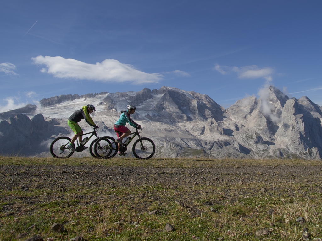 If you want to try the new E-bikes (electrically assisted bikes which add the power of an electrical engine to human propelling action), the Arabba area is the ideal training ground. Handy, quiet and without any pollution emission, electrical bikes become an efficient vehicle above all for the less-trained and not so young athletes in order to face easily and in complete safety the wide choice of excursions, bike tours and itineraries in the area of the Dolomites UNESCO natural heritage, pushing (pedalling) both in the valley bottom and on the top of the mountains (reachable with the skilift systems), enjoying breathtaking rides without any stress.