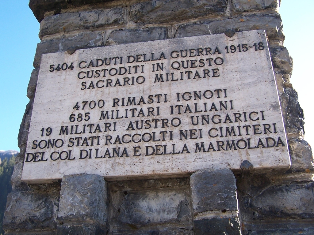 A testimonianza della Grande Guerra, il territorio di Livinallongo del Col di Lana presenta numerosi monumenti: il sacrario militare di Pian di Salesei, l'ossario militare al Passo Pordoi, la chiesetta ed il momumento ai Caduti sulla sommità del Col di Lana, il Col di Lana stesso, ancora squarciato dall'immensa esplosione del 1917.
